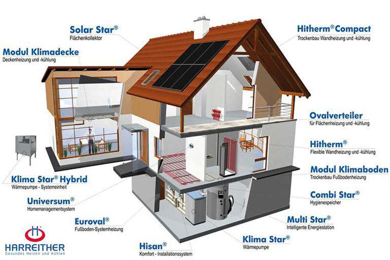 Nachhaltig arbeiteten wir auch schon bevor der Begriff Nachhaltigkeit zum Inbegriff wurde. Und das liegt an unseren festverankerten Werten. Systeme, welche ökologisch sinnvoll sind, wie beispielsweise die regenerativen Flächenheiz-/Kühlsystemen von Harreither, die den Energieverbrauch nachhaltig senken, sind heutzutage nicht nur eine Option, sondern ein Muss. Besonders für Kunden, welchen Natur und Umwelt am Herzen liegen. Nicht nur unsere Kunden, sondern auch wir wollen ein Vorbild sein. Mit unserer Solarstromanlage produzieren wir die Hälfte unseres Stroms selbst. Mit jeder produzierten Kilowattstunde Strom ersparen wir uns und unserer Umwelt zig Tonnen CO2 pro Jahr! Zusätzlich sorgt eine unterirdische Wasserpumpe für Wärme im Winter und kühle Räume in den Sommermonaten.